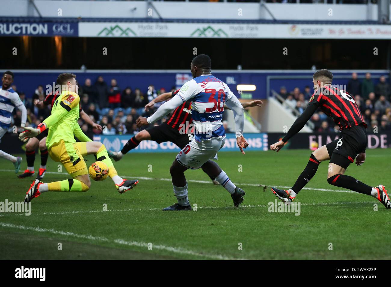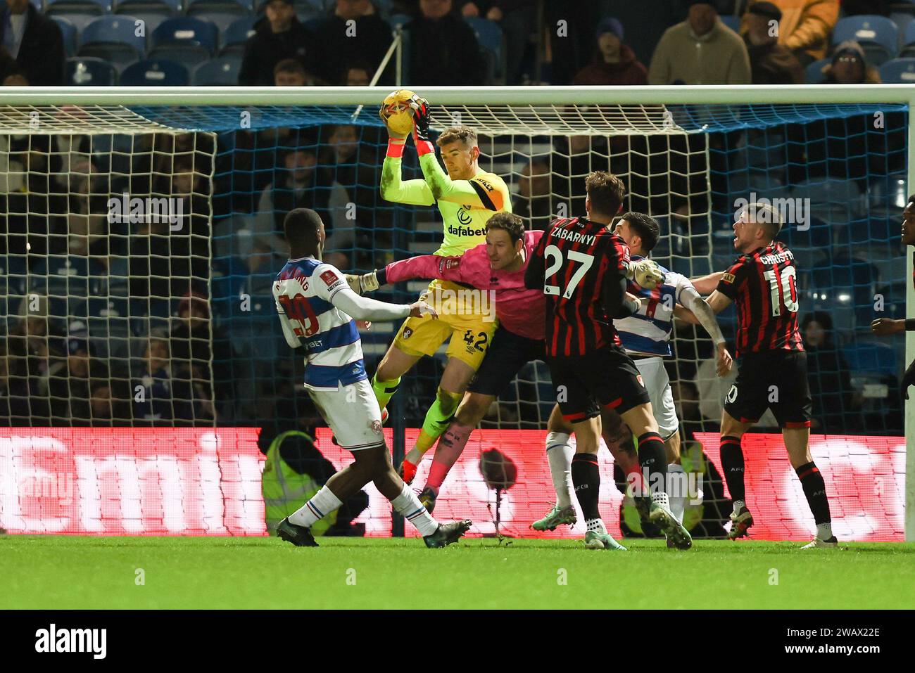 Source : www.alamy.comAFC Bournemouth goalkeeper Mark Travers fails to stop a goal